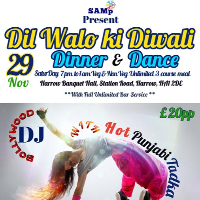 Diwali of the Big Hearts and even Bigger Appetites, Dinner, Dance, and DJ Desi Tadka's hottest tracks on Saturday, 29 Nov at Harrow