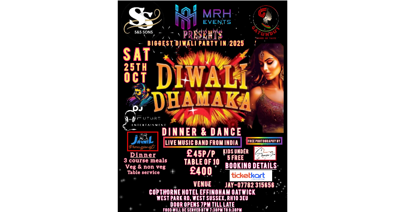 Celebrating a biggest diwali party 2025, diwali dhamaka dinner & dance with live band from India and dj to set the floor fire come along with your friends and family to celebrate diwali dinner & dance in style